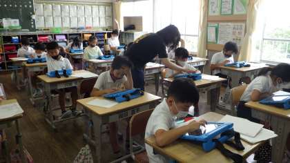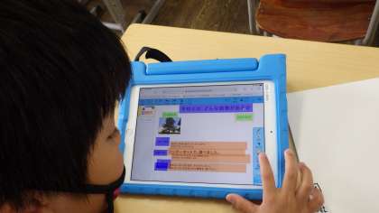 3年生が、国語科「調べて書こう、わたしのレポート」で、学習用タブレットを使ってレポートの書き方を勉強していました。