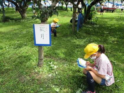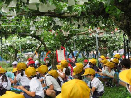 子どもたちは聞き取った説明をプリントに書いたり、実際に成長した梨の様子をまとめたりしていました。