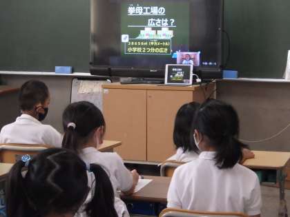 そこで挙母地区のキューピーの工場と高嶺小の教室をオンラインでつなげての工場見学が行われました。