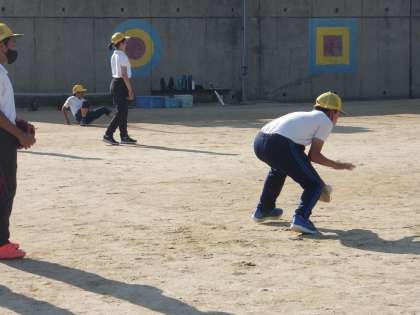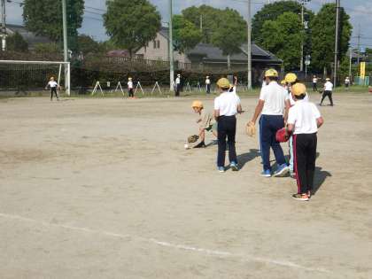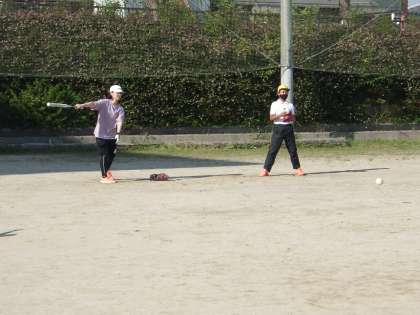 ソフトボール部ではキャッチボールやノックなどの練習で、汗を流していました。