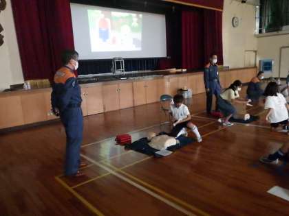 2日(金)消防署の署員の方を講師にお招きして、5年生が救急救命講習を受けました。