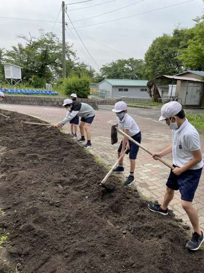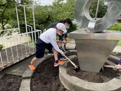 5月には学校に美しく彩りを添えるため、花壇作りをしてくれました。