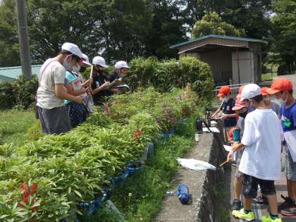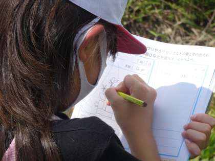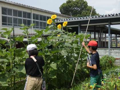 3年生の理科の授業では、ホウセンカやヒマワリの様子を観察し、ノートに記録していました。先週までの雨をしっかりと吸収し、ぐんぐんと大きくなったホウセンカとヒマワリの成長に、子どもたちは驚いていました。