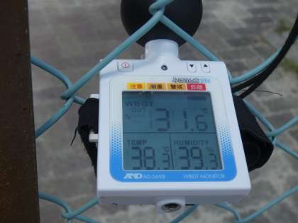 13時現在、七つ輪で測定したWBGTの値が31.6となり「危険」値となっています。また、3時間目の放課からWBGTの値が31を超えており、体育の授業および長放課の外遊びを禁止しています。熱中症に気を付けて生活します。