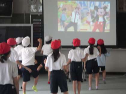 ミッキーマウスの動画に合わせてダンスなどをしていました。