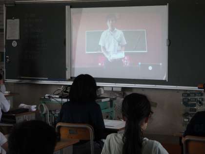 生徒指導の櫻井先生の夏休みの過ごし方についても、全校で映像を見ながらすすめました。