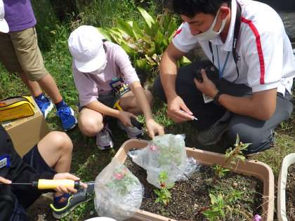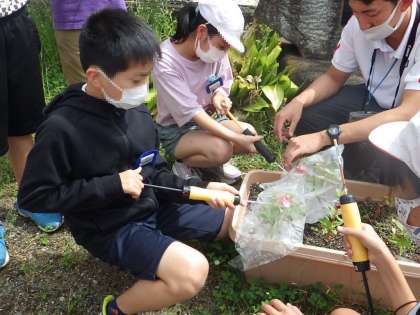 6年生が理科で気体検知管を使って光合成の実験を行っていました。