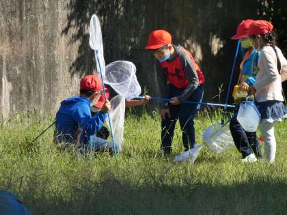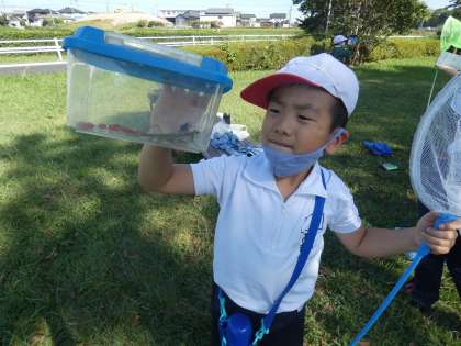 1年生の生活科の授業で、学校近くの水車公園に行き、虫捕りに行きました。