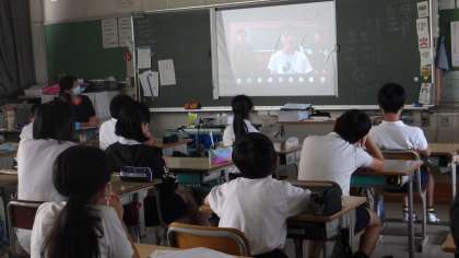 例年なら体育館に全校が集まるのですが、今年はオンライン・リモート形式で集会を行いました。