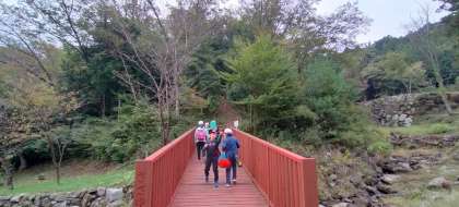 施設内の野山を巡るオリエンテーリング、ヤッホーという子ども達の元気な声があちらこちらから響いてきます。