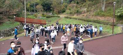 山の学習、2日目の朝です。 みんなきちんと起きて、朝のつどいを行いました。 よい天気になりそうです。