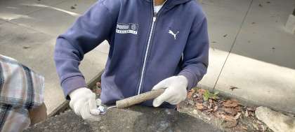 枝にスプーンをねじ込みます。ここがいちばん大切です。