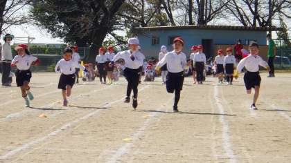 後半の徒競走では名前を呼ばれると元気に返事をして手をあげ、競争が始まるとゴールめがけて全力で走りました。