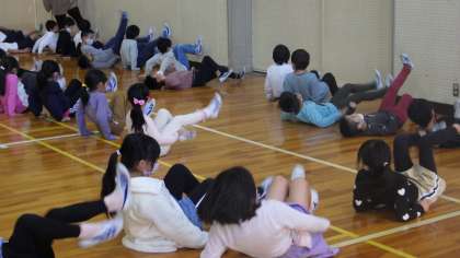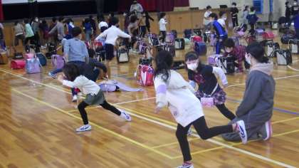 もし襲われそうになったらどうしたらよいか、などお話だけでなく、実際に叫び声をあげたり、抵抗するために座り込んでジタバタしたり、その姿勢からパッと逃げたりするなど、体を使って活動しました。
