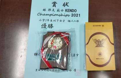 「林邦夫範士KENDO Championships2021」大会において、小学校3年生以下女子個人の部で、見事優勝に輝いた児童の栄誉を称え表彰しました。
