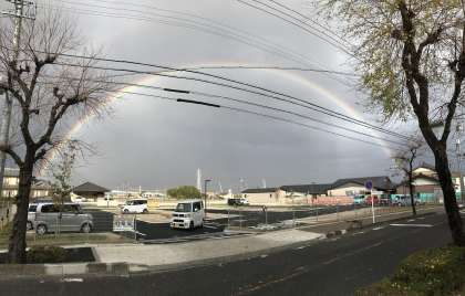 雨は一時的にやみましたが、空を見上げると、大きな虹がかかっていました。