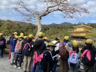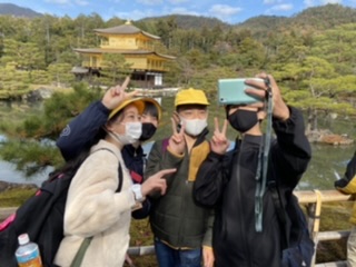 1号車、5号車は金閣寺見学中です。 今日は天気も良く、青空に金色が映えます。