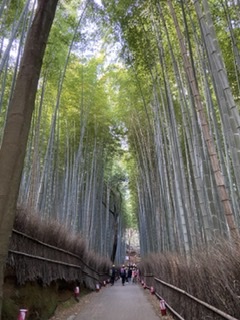 八方睨みの龍の絵と美しい庭園を見ました。気持ちのいい竹林を歩きました。2号車
