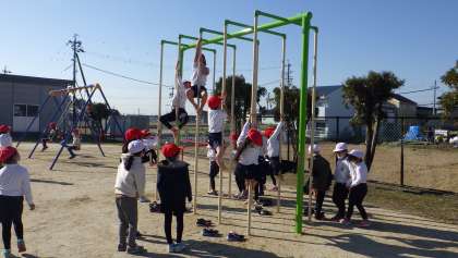 西運動場の工事が終わり、新しい遊具が完成しました。