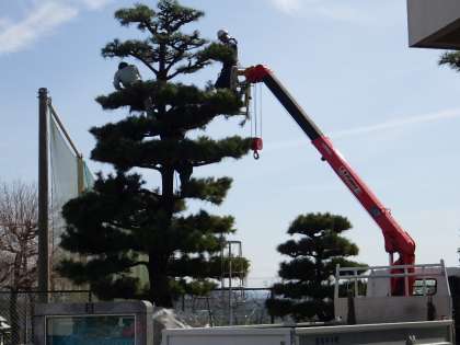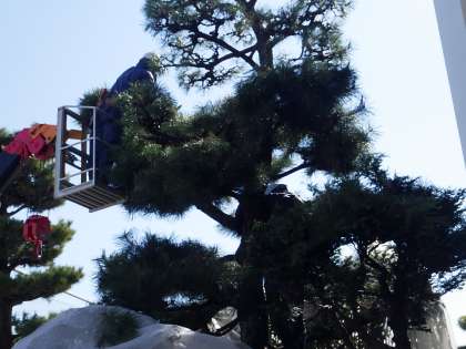高く成長した黒松の整備は、プロでないと難しいです。