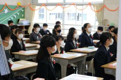 在校生が作った飾りに囲まれ、特別な式のために、いつもと違う特別な服を着た卒業生たちが、少し緊張しながらこの日を迎えました。