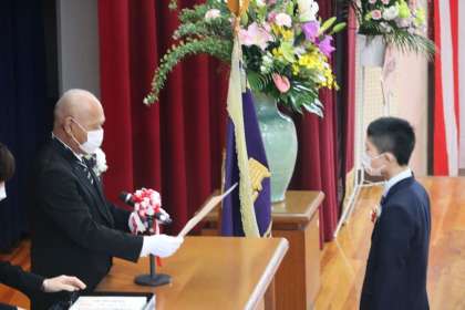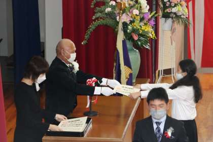 卒業証書が授与されました。 証書は地元の小原和紙で作られています。