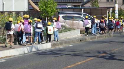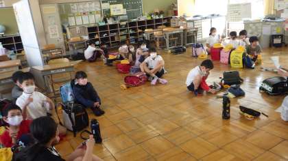 この日は1年生にとって、初めての一斉下校です。これまでの1年生下校と異なり、全体での並ぶ場所を教えてもらったり、放課後児童クラブとの確認をしたりしながら、班長さんたちに連れられて、みんなで下校しました。