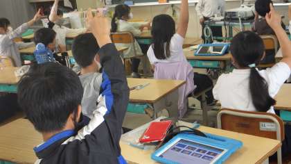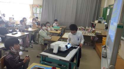 タブレットで作成したプレゼンテーション資料を、自分でプロジェクターを操作しながら伝えていました。