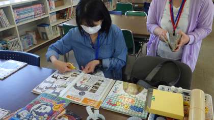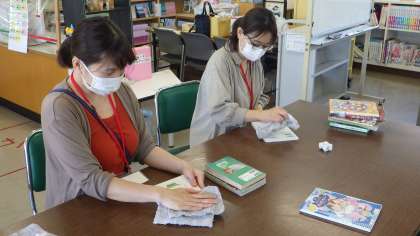 図書ボランティアさんも学校支援ボランティアの一つで、火曜日に図書室に来て、季節に合わせた図書室の掲示や、その時々に応じたテーマで本の紹介をしてくださったり、古くなった本の整備やクリーニングなどをしてくださっています。