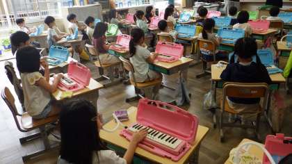 14日(火)1年生を対象に鍵盤ハーモニカの講習会が開かれました。