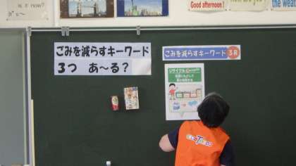 4年生が、eco-T出前授業で、ゲームや実物を使った体験をしながら、ごみの分別と3R(リユース リデュース リサイクル)の学習をしました。ごみは、私たちの行動によって、いわゆる「ごみ」ではなくなるので、今、できることから行動していくことが大切だと学びました。