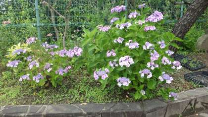 学校のあちこちで、紫陽花の花が見ごろになっています。