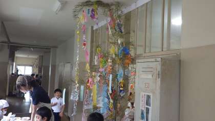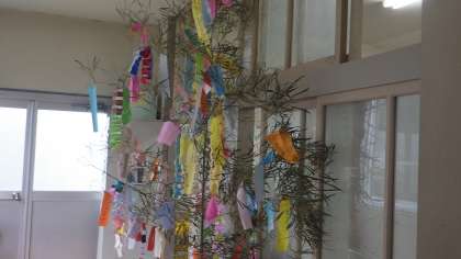写真は1年生の3クラスの七夕飾りです。