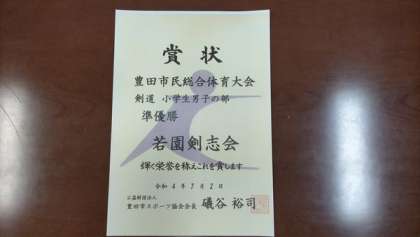 7月2日に行われた豊田市民総合体育大会、剣道において本校の児童が優秀な成績を収めましたので、栄誉を称え校長室にて表彰しました。
