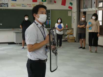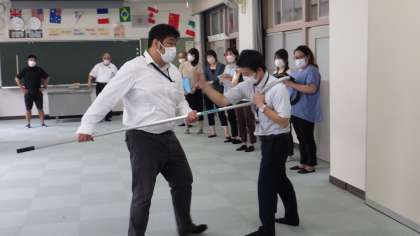不審者が侵入した際のシミュレーション訓練の後は、署員さんによる講義と実技研修を受けました。