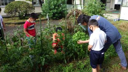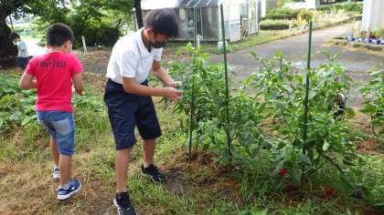 ナスやトマトやピーマンなど、学級園で育てていた野菜たちが食べごろの大きさになりました。