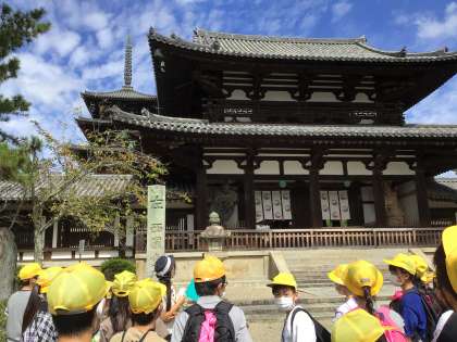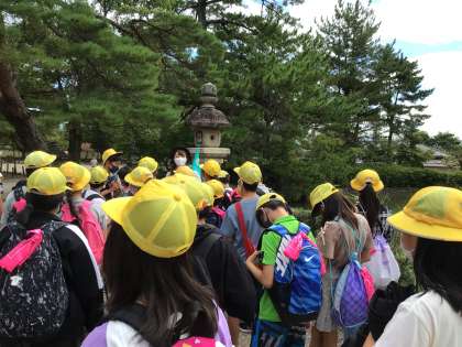 子どもたちはバスガイドさんの説明を聞きながら、見学を楽しんでいます。