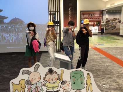 子どもたちは、遣唐使船に乗ったり、展示物を見学したりしています。