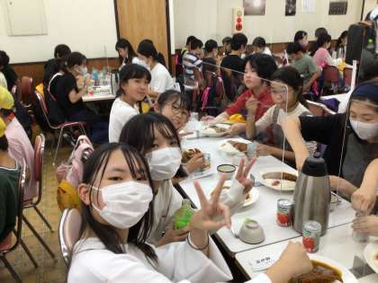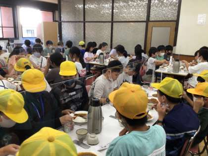 子どもたちは、学級別バスツアーを終えて、みんなお腹が空いているようで、