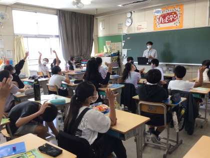 税金の役割や種類、社会の仕組みの中での税金の大切さなどを税理士会の方が映像などを交えながら教えてくださいました。