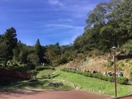 5年生が秋晴れの晴天の下、豊田市総合野外センターに到着しました。