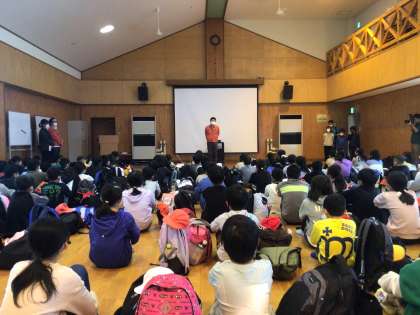 入所式を行い山の学習のスタートです。みんな元気いっぱいです。