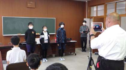 今回もオンラインでスタジオになっている会議室と各教室をつないで行いました。