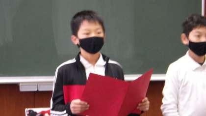 学級委員の認証や、地域の少年の主張で発表する6年生の発表を聞きました。