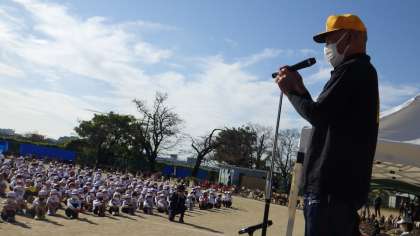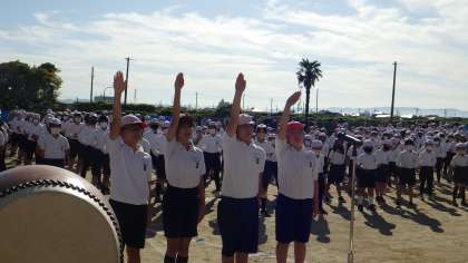準備運動も、運動会テーマ発表も、選手宣誓も
