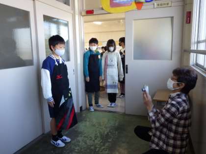 5年生が、家庭科の学習で制作していたエプロンが完成しました。