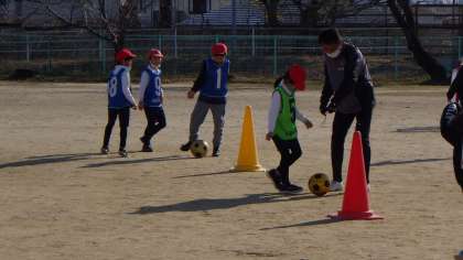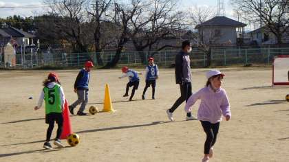 1年生、2年生それぞれが参加し、コーチの方からサッカーの基本的な技術を教えていただいたり、ミニゲームを楽しんだりしました。