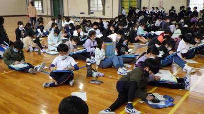 今回は上郷中の生徒が来校して、4年生に自分たちが調べた内容や、今後この地域に広めていきたい活動について紹介してくださいました。