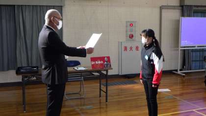 各学年の発表の後は、科学研究の優秀作の表彰や、社会福祉協議会が主催した習字やポスター入選者の表彰が行われました。