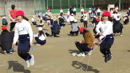 1年生2年生は、飛んだ回数を記録するため、5年生6年生の子がペアになって、行いました。